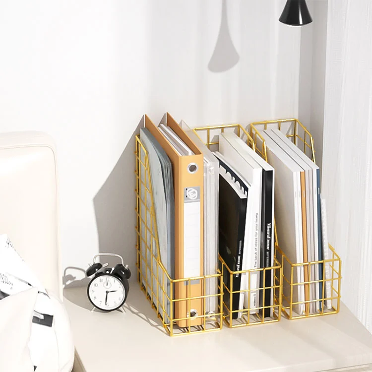 4. ชั้นวางนิตยสารโลหะสำหรับเดสก์ท็อปในสำนักงานที่มีคุณภาพของเราสามารถผสมผสานการใช้งานได้อย่างยืดหยุ่น ช่วยให้สามารถวางสิ่งของได้หลายชิ้นในขณะที่ยังคงรูปลักษณ์ที่เรียบร้อยและสวยงาม