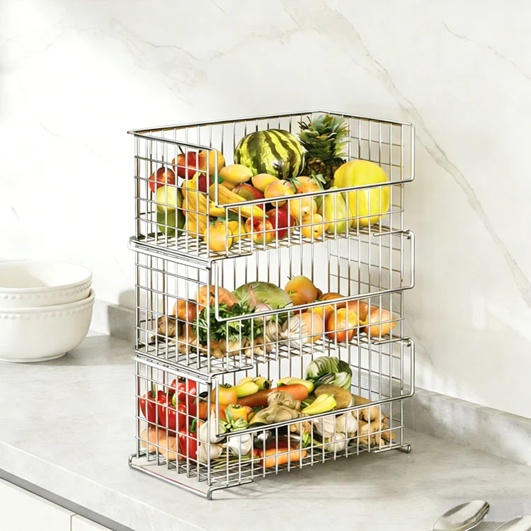 1. คุณสมบัติโครงสร้าง: ใช้การออกแบบโมดูลาร์ที่ช่วยให้สามารถวางซ้อนได้ฟรี สามารถใช้ตะกร้าใบเดียวแยกกัน และเมื่อวางตะกร้าหลายใบซ้อนกัน คลิปด้านล่างจะจัดตำแหน่งตะกร้าได้อย่างแม่นยำเพื่อป้องกันการเลื่อนและการล้ม ตัวตะกร้าแบบตะแกรงเปิดรวมกับขอบตะกร้าที่ยกขึ้นสามารถป้องกันไม่ให้ผักและผลไม้กลิ้งลงมา ในขณะเดียวกันก็รักษาการไหลเวียนของอากาศและลดโอกาสที่อาหารจะเน่าเสียและการเสื่อมสภาพ